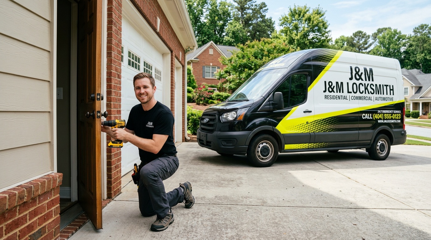 Your garage is one of the most common entry points for burglars — and it’s often the least secured part of your home. Whether you need a lock added to your garage side door, a T-handle lock replaced on your garage door, or a deadbolt installed on the garage-to-house entry door, J&M Locksmith provides professional garage door lock services throughout metro Atlanta.