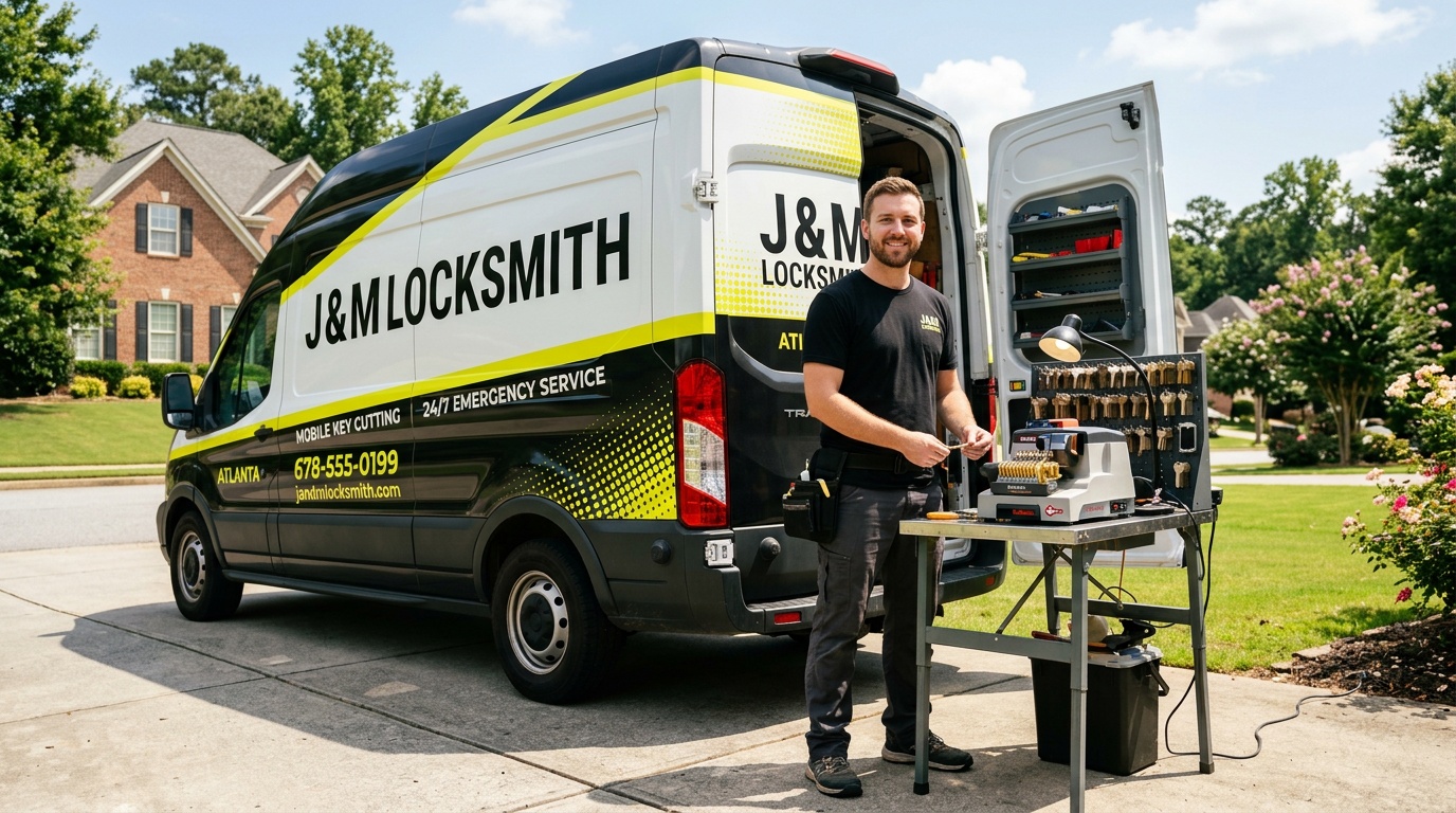 We’re mobile — our fully-outfitted vans bring the shop to your doorstep, whether that’s a home in Buckhead, a business in Midtown, or a car in a parking lot in Decatur. Every job gets an upfront quote, professional-grade work, and a locksmith who genuinely cares about doing it right.